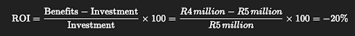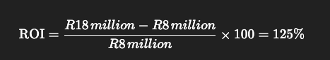 An e‑commerce transformation costs R8 million and generates R18 million in incremental digital revenue over 12 months.